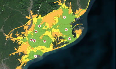 日野市は、SDGs を軸に据えた総合計画の策定に取り組むなど積極的に SDGs の活用を図っており、2019 年(令和元年)には東京都内で初めて「SDGs 未来都市」の選定を受けています。ArcGIS サイトライセンスを活用し、市が保持する行政データをもとに、SDGs 指標の状況をわかりやすく可視化することで、その対策と推進に向けた検討を行っています。