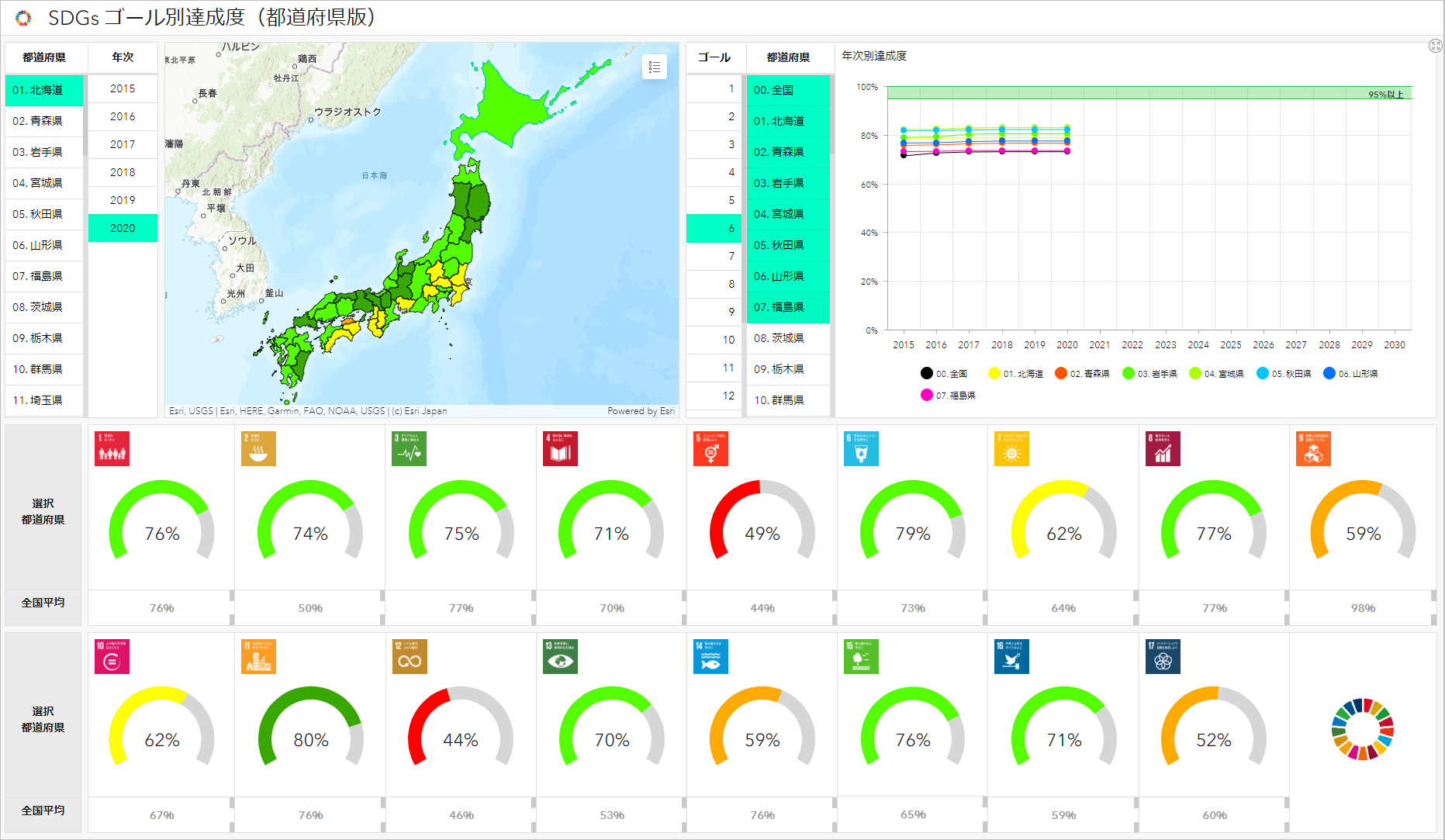 各自治体の SDGs 達成度をわかりやすく可視化したダッシュボード