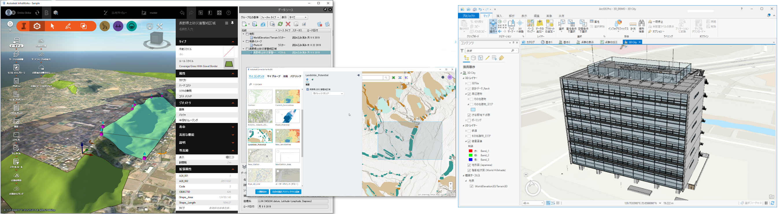 | 13 : 30 ~ 16 : 30 | 講演・GIS とは・3D GIS データの作成と活用 ・データ活用の共有基盤 ~ArcGIS プラットフォーム~ ・ArcGIS 製品情報 特別ゲストGISとBIM/CIMの統合活用株式会社ドーコン GISでの三次元モデル、BIM/CIMモデルの活用対応が進んでいます。 本発表では、GISとBIM/CIM統合活用に向け、基礎知識の説明とデモを行います。 GIS と BIM/CIM の連携オートデスク株式会社 |