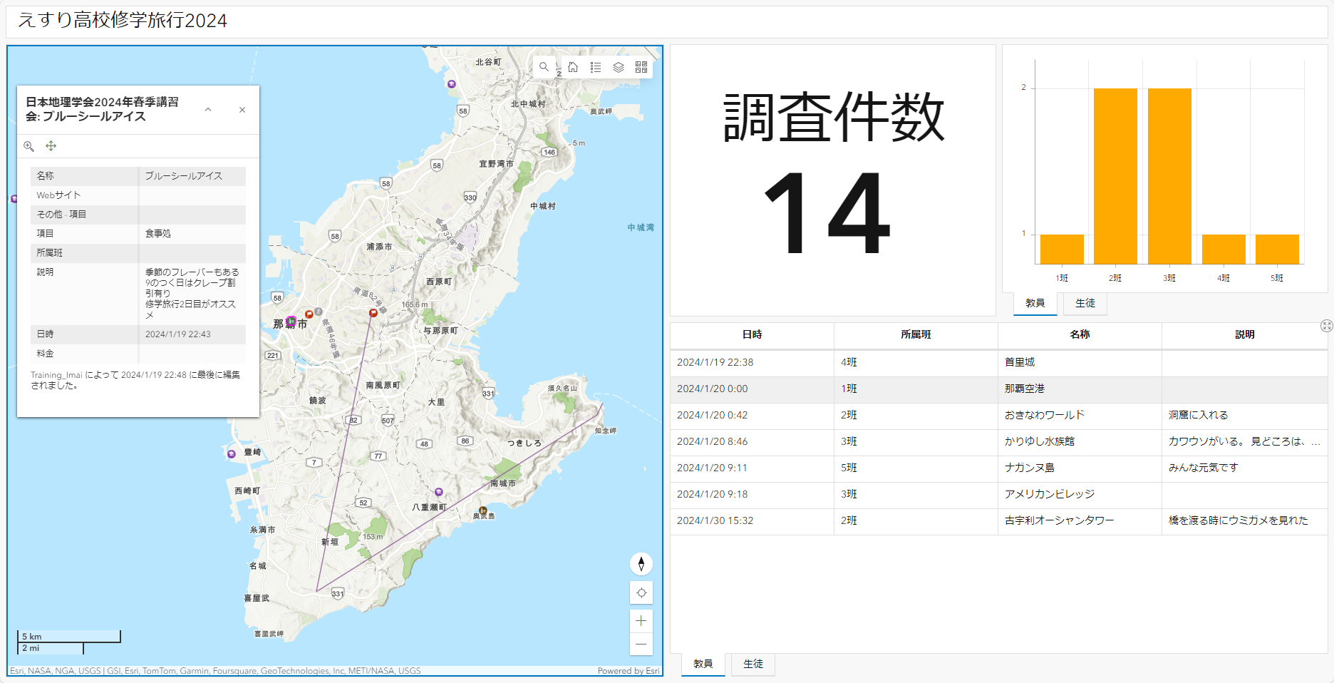 ペーパーレス化により SDGs の取り組みになるとともに、班別行動の状況をマップ上でリアルタイムでモニタリングできるため、先生方の校外学習中の負担軽減になり、ICT 教育としても活用できます。作業はソフトのインストールは不要でインターネットさえあれば利用可能なクラウド GIS「ArcGIS Online」を用いて行うので、新学期からすぐに導入できます。奮ってご参加ください。