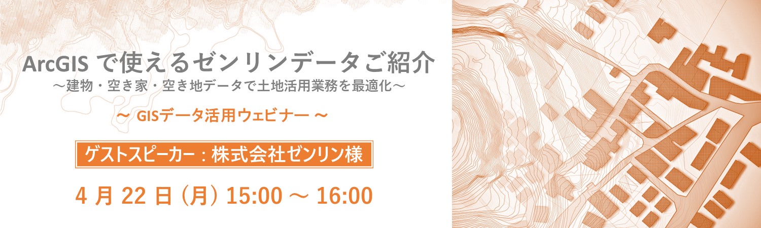 本ウェビナーでは、ゼンリン社のエリアマーケティングコンテンツの中から、全国約 3,900 万棟の建物一軒一軒の情報を収録した「建物ポイントデータ」や、加えて「空き家・空き地データ」を紹介し、ArcGIS と組み合わせたデモンストレーションとともに土地活用業務、災害対策業務に活用いただける事例をご紹介します。
