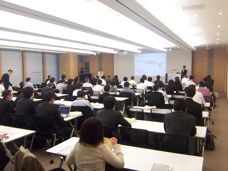 ArcView10での編集と図郭印刷機能を参加者に体験していただく内容で、どの回も満席以上の盛況ぶりでした。「GISのイメージが湧いた」「業務で早速活用したい」などのご意見をいただき、初心者、経験者を問わず満足していただけたようです。