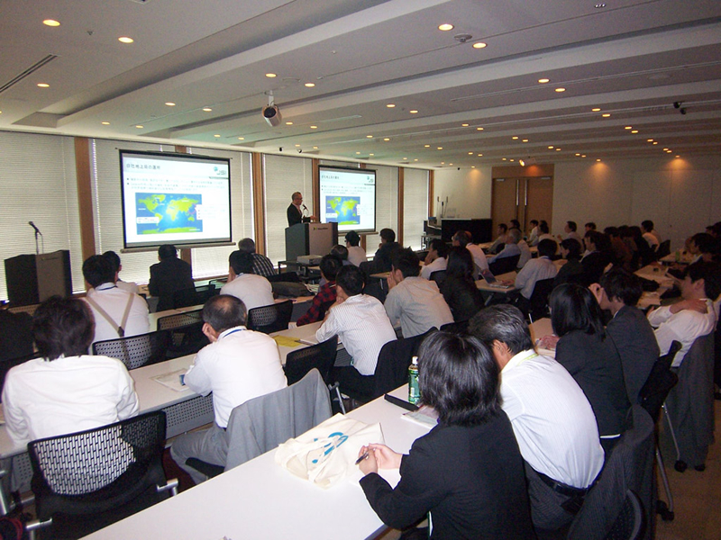 3.11以降、特に話題となっている、太陽光発電、風力発電、地熱発電などに関して本ワークショップは、外部からの識者を招いてご発表頂きました。脱原発に向けてGISがどのように活躍できるか、様々な視点を持つことが出来たワークショップだったのではないかと思います。会場も立錐の余地がなく参加者の聞く姿も真剣そのもので、新エネルギー分野に対する関心の高さが感じられました。