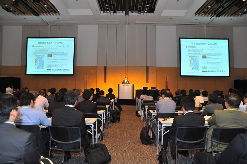東日本大震災の発災から約3か月が経ち、GISは復興・復旧のさまざまな局面で利用されています。本ワークショップでは、大学や研究機関・中央政府や地方自治体・民間企業などで、どのようにGISが活用されてきたのか報告がされました。 第一部ではEMT(Emergency Mapping Team)の活動を、提供側の視点とユーザ側の視点から報告がされ、第二部・三部では多様な立場の発表者から、GISの多方面での活用事例が報告されました。 約5時間と長丁場のワークショップにも関わらず、会場は常時満員で、参加者が防災に対して高い関心を抱いていることが感じられました。
