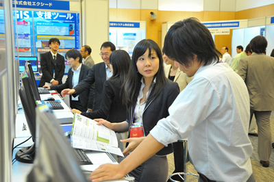 農業、防衛、防災、エリアマーケティング、建設コンサルタントなどの業種・分野に特化したソリューション、そしてモバイル、クラウドといった最新テクノロジを紹介する展示が行われました。各ブースとも参加者が熱心に説明を聞いたり、活発な質疑応答が終日行われました。
