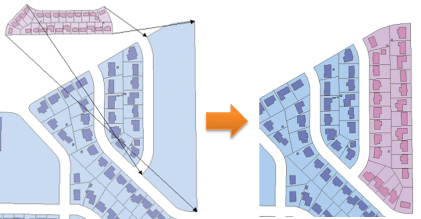 ライン フィーチャを補正するために使用されます。指定されたリンクを使用して、直線を維持する区分的な座標変換を行うことで、補正対象のデータを目的のデータとより正確に一致させることができます。