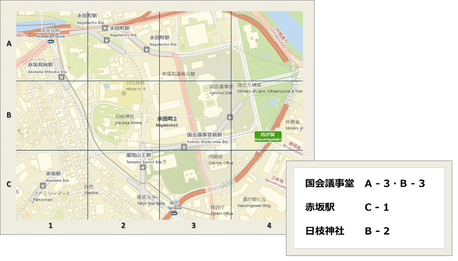 たとえば、観光ガイドブックに載っている地図に格子状の線が描かれているのを目にしたことがあるでしょうか。見知らぬ土地の地図で、初見で行きたい場所を見つけるのはなかなか容易ではありません。地図上の各格子に記号や番号が割り振ってあると、見つけたい場所の発見がより簡単になります。このように、まずメッシュには位置特定を補助する役割があります。