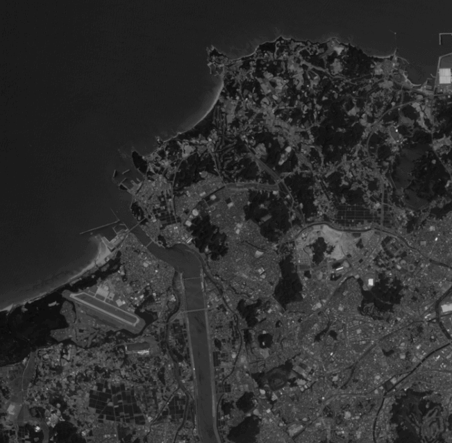 一般的に、衛星画像のセンサーはパンクロマティック センサーとマルチスペクトル センサーの 2 つがあります。パンクロマティック センサーは光学系のセンサーで、高精度のデータを取得することができますがモノクロの画像です。一方、マルチスペクトル センサーは、可視光から近赤外線まで複数の波長帯の電磁波を記録しているため多くのスペクトル情報を持っていますが低解像度です。