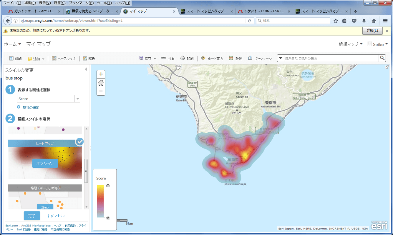 スマート マッピングは ArcGIS でマップを作成する際の機能の一つで、地図で表現したい属性を指定するだけで、その属性の内容(文字列、実数、整数等)に応じて適した表現方法を提示する機能です。あらかじめ地図表現の方法や内容を決めておく必要はなく、シンボルの大きさや、色、表示縮尺、分類の閾値などが自動で設定されます。