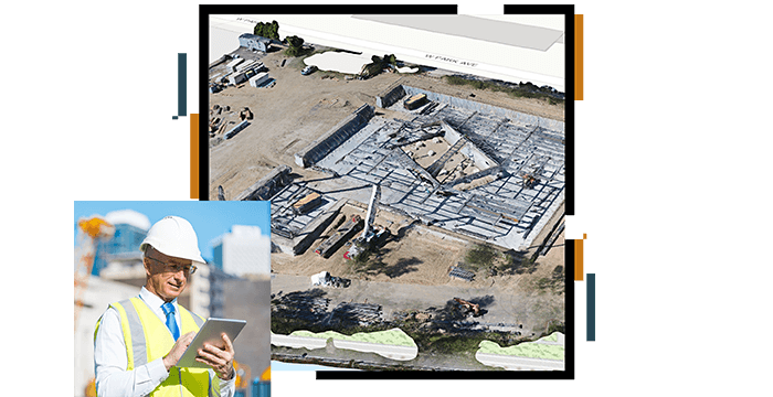 建築や土木工事の現場において、Web マップやダッシュボードなどのWeb アプリケーションで進捗状況を管理することにより、オフィスと現場との間で、リアルタイムなデータ連携ができます。