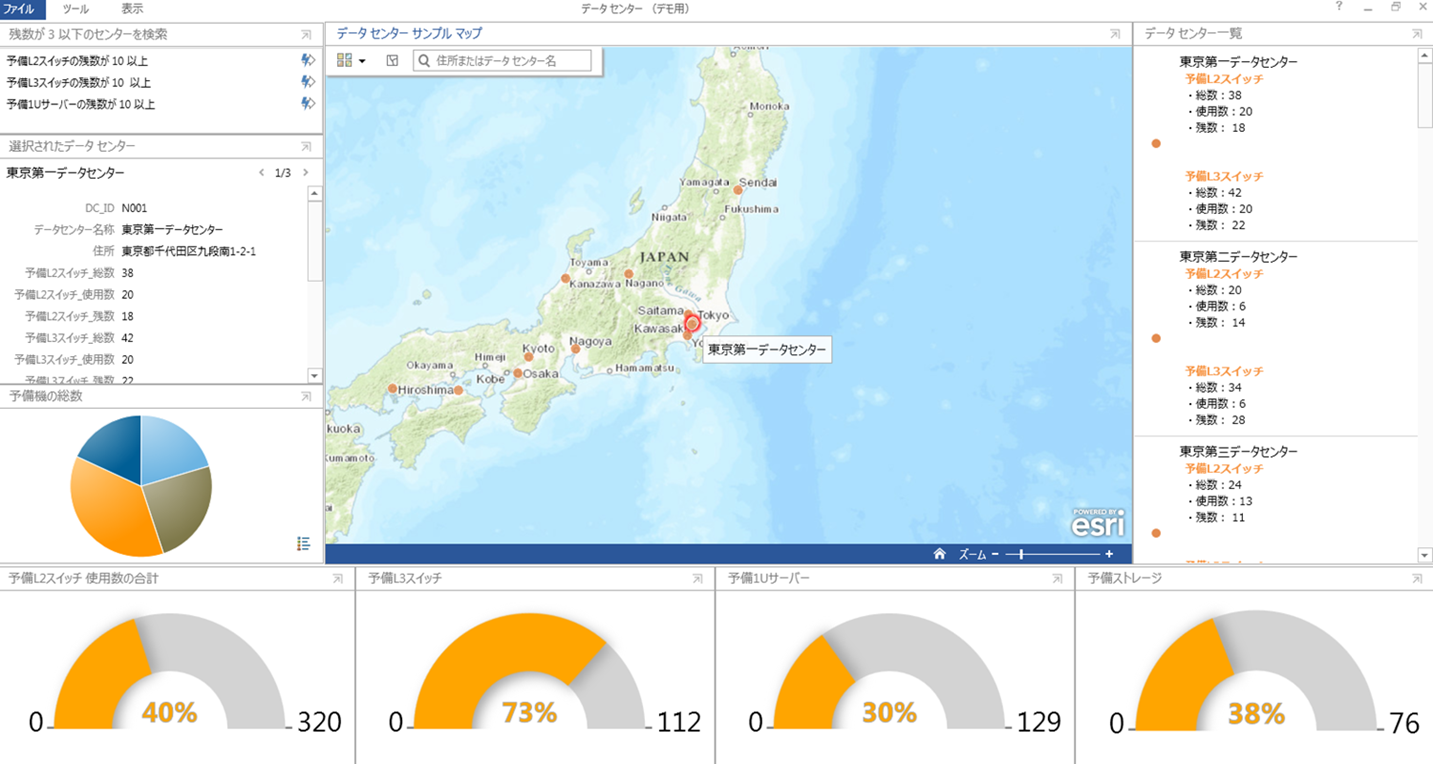 各データセンターに設置している様々なハードウェアリソースをダッシュボードアプリケーションで可視化し、本番機や予備機のリソースを最適化することができます。「どこに」、「何が」、「どれくらい」あるのかを把握することにより、ハードウェアの最適な配備や解約などコスト削減に貢献すると共に適切なハードウェアリソースの運用を支援することができます。