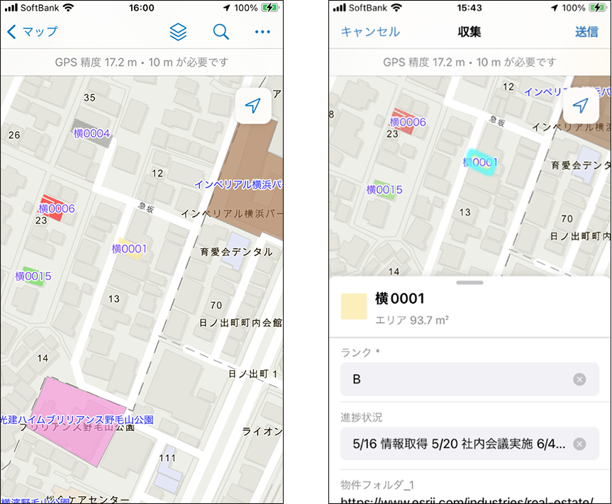 ② 物件ステータスの管理では、スマホアプリを利用します。このアプリは、地図ベースの現地調査に適した ArcGIS Field Maps を利用しています。