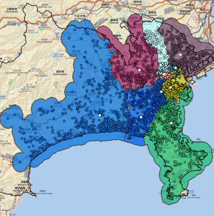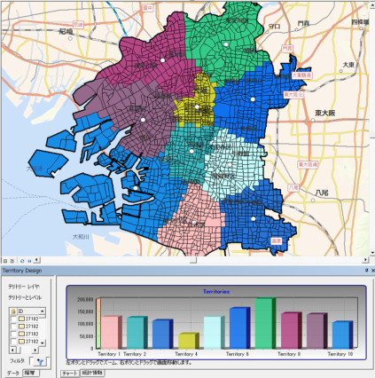 売上げを拡大するためには、自社営業担当者による直接販売の他に販売代理店を拡大する方法があります。売上げや販売代理店が少ないエリアを地図で視覚化し、販売代理店開拓優先エリアを分析することができます。また、営業担当者が効率的に販売代理店を開拓するためには、営業担当者の営業機会の均等化や担当エリアの平準化が欠かせません。市場ポテンシャルや地理的範囲を考慮することにより、最適なテリトリー策定をすることができます。