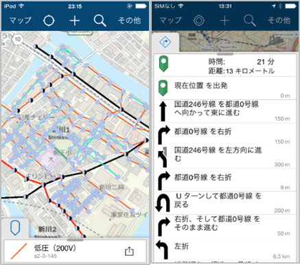 送配電の設備を地図で視覚化することにより、ケーブルの敷設状況や電柱の位置、障害発生箇所、定期点検エリアを的確に把握することができます。また、膨大な件数の巡回点検が発生したときのサービス拠点や保守・メンテナンス要員ごとのエリア策定や対応計画立案時の最適なルート分析など、件数・距離・時間など各種指標を考慮し、最適な対応計画を策定することができます。