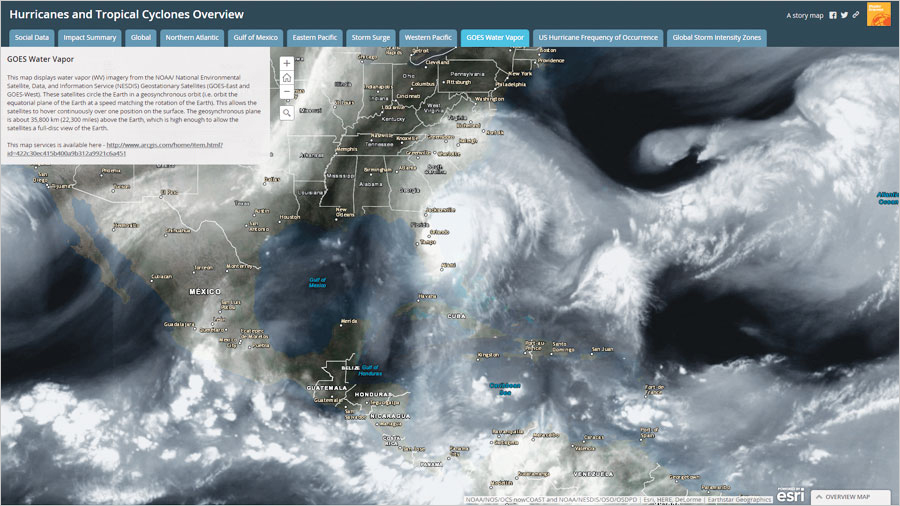 2016 年のハリケーンマシュー発生時、ArcGIS Online を使用し、新しいデータが提供されるたびに即座に新しいビューを作成した。