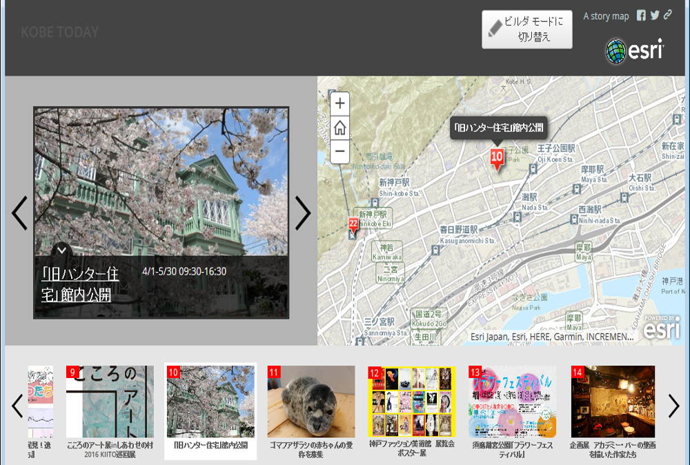 広報紙にイベント情報を掲載するには、以前は各課から所定の Word ファイルで入稿された情報を広報課の職員が紙面に入力していたが、データを活用しやすくするため、Web フォームを通じて行うようにしたことで、データベースでイベント情報を管理できるようになった。またイベント情報は、他のアプリでも参照できるよう API が提供されている。 イベント情報のデータベースが作られたことで、紙面では紹介しきれなかったイベントや、位置情報や写真などの追加情報をイベント情報サイト「KOBE Today」に掲載し、市民に最新で詳細な情報を届けることができるようになった。さらに、イベント情報の API と ArcGIS Online を連携させ、ストーリーマップとして最新のイベント情報を地図上で紹介している「KOBE Today MAP」を開発した。このように GIS やデータの活用に取り組むことで、業務フローが改善され、市民向けの情報公開の質が向上するような事例が庁内で出てきている。