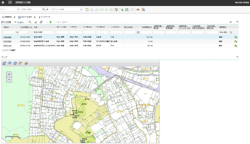 OCMAX は、施設や土地の管理に日本アイ・ビー・エム株式会社の Maximo を利用しており、Maximo と連携可能な GIS ソフトとして ArcGIS が検討され、クラウドベースのシステムを構築するにあたり、Web 経由でのアクセスが可能な ArcGIS Enterprise が候補となった。これら 2 つのソフトウェア間での連携が確認できたことから ArcGIS Enterprise が採用され、ArcGIS 自治体ソリューションライセンスを導入した。