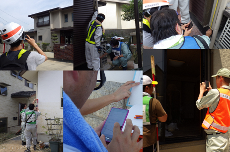 調査にあたっては内閣府の指針に準拠した紙の調査票で調査が進められ、スマホアプリから調査結果、位置情報、現場写真を現地からクラウドに登録できるシステムにより、スピーディな調査を実現した。