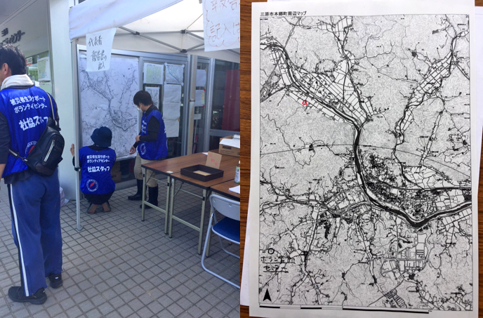 そこで、ボランティアセンター立ち上げの 2 日後には、田中教授の研究室による地図班が結成された。