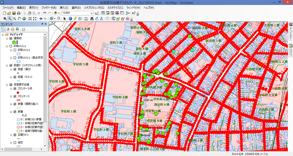 日常業務では、用途地域に関する窓口対応、課税状況の確認、道路照明等の設備補修履歴管理、建築確認申請等で、データの編集や主題図の印刷などに ArcGIS Desktop を使用している。また、作業の結果確認や状況確認などの閲覧用途では、ArcGIS Enterprise を用いて構築した庁内 Web GIS を業務で使用している。職員によって作成、更新されるデータは、庁内横断的な利用、各課での利用といった目的に応じた権限設定により ArcGIS Enterprise で一元管理され、各種の業務で利用されている。また、ArcGIS Online を使用して課固有の GIS 利用も行っており、家屋調査業務などで現地調査アプリを使用して現地の状況確認や写真での情報収集に GIS を活用している。