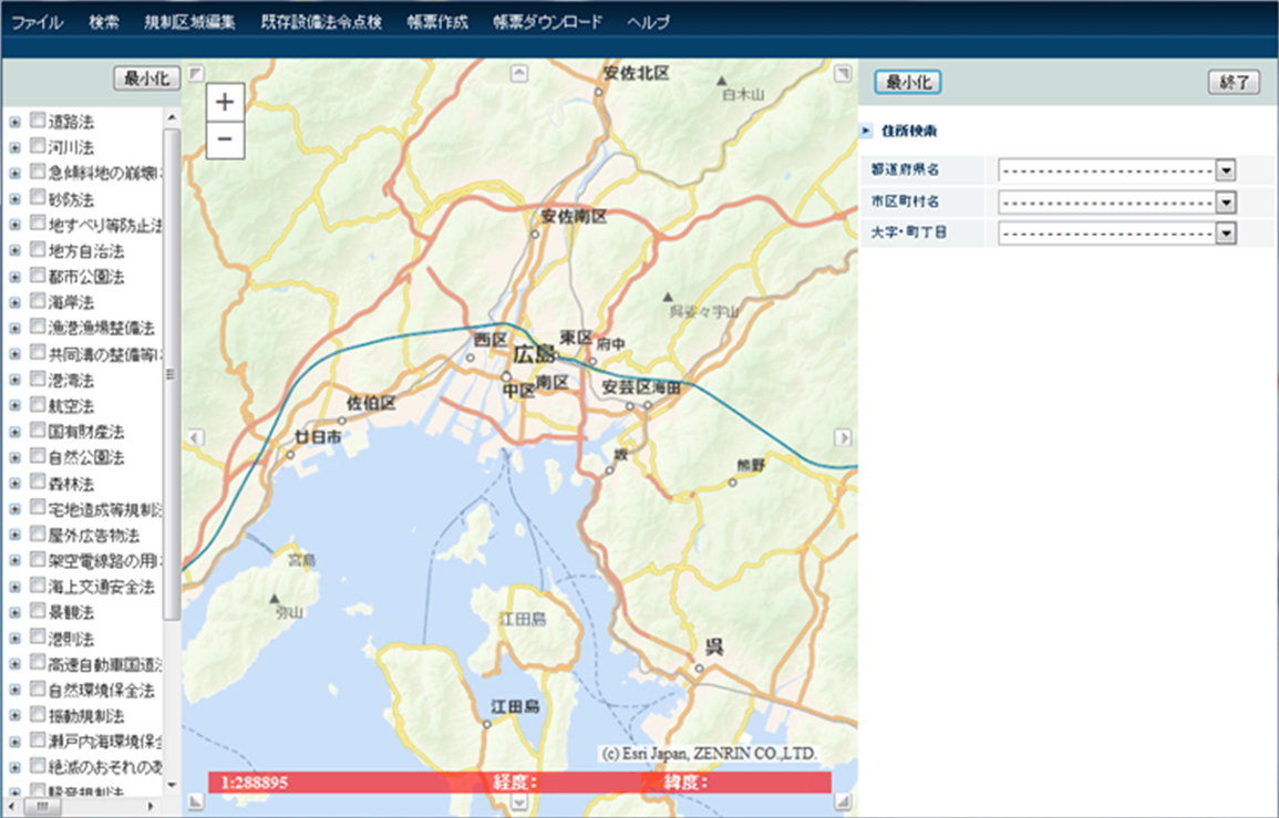 その他にも配電設備に対して道路法や景観法など占用・許可申請の対象要否を確認するための法令マップシステム等、ArcGIS を利用して、さまざまな業務システムが開発されている。