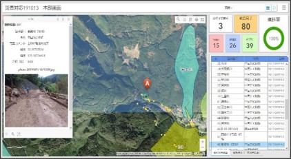 以前の緊急点検では、カーナビと調査箇所が示された紙地図を頼りに現場へ向かい、現場で調査内容のメモや写真記録、位置情報の把握を行い、1 日の活動が終了したら活動基地に戻り、調査内容メモとデジカメで撮影した写真などとの紐付けの上、Excel 形式で報告書を作成していた。その課題として、山中では目印となる目標物が少ないため自身の現在地の把握が困難である他、本部が隊員の現在地や調査状況をリアルタイムに把握できない、そして 1 日に複数箇所を調査するため活動基地に戻った後の調査結果の整理に多大な時間と労力を費やしていたことが挙げられる。全国から派遣される隊員は当然現地の土地勘がなく、現在地の把握に関する課題は常につきまとった。