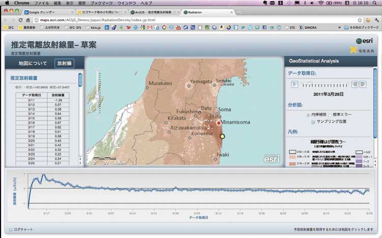 Esri社(米国)では原発事故以降、空間線量率だけでなく土壌や食料の放射線被害に関するデータも収集している。またKonstantin Krivoruchko氏をリーダーとするGA開発チームではareal interpolation手法も開発しており、今後自治体レベルで集計されたデータの空間内挿を適用できるようになる。
