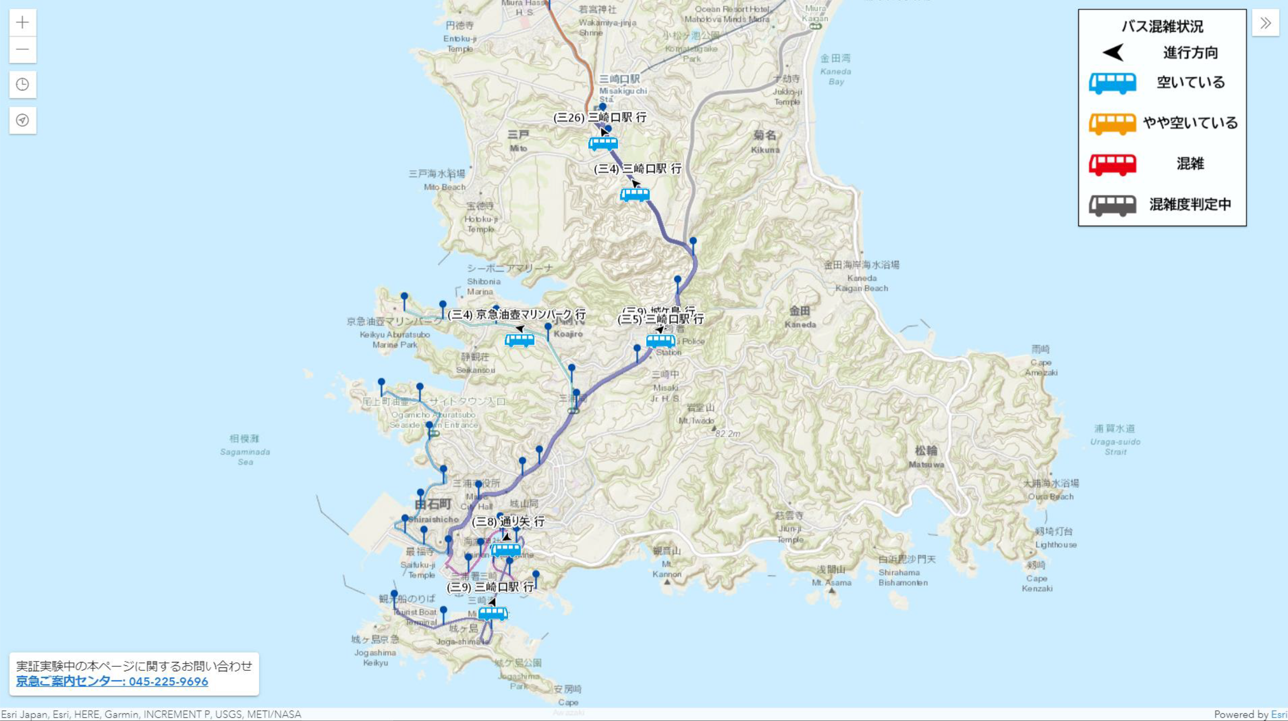 これらの研究成果を基に、京浜急行電鉄(株)が実装を進めている三浦半島観光 MaaS アプリとのデータ連携に向けて、三崎口発の京急バスを中心とする車内混雑度計測・可視化システムの開発に踏み込んだ。今回は ArcGIS Enterprise を用いた Web アプリを公開したが、今後は、ArcGIS REST API などの機能を活用し、他の MaaS アプリとの連携も検討していく。