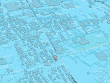 ・ 長野県須坂市の都市水害リスクの分析都市計画基礎調査の建物データの高さ情報とハザードマップの浸水深データを活用して 3D 表示し、都市の水害リスクを分析した。