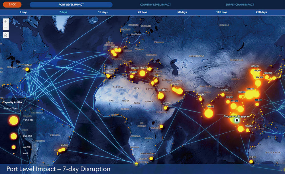 PortWatch は、クラウドベースの ArcGIS Hub にホストされており、船舶の位置情報を人工衛星で捉えることで、リアルタイムの港湾データにアクセスできる国や人々の範囲を広げる。これにより、IMF のチームは、データを簡単に保存し、加盟国に提供することができる。また、この技術は、自動化された港湾のデータを視覚化、更新、共有するのにも便利である。さらに、PortWatch には、ArcGIS Experience Builder が組み込まれており、利用者は、港湾に影響を与える可能性のある仮想的な混乱や気候シナリオの波及効果をシミュレーションすることができる。