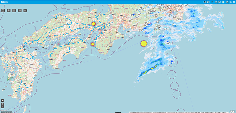 NEXCO西日本グループの業務は、広範囲な高速道路の維持管理を担うことから、道路周辺で発生する事象情報を地図上で可視化することが求められる。また、迅速な情報共有を目指し、業務ポータルサイト「GIS 情報共有マップポータル」を構築し、Web アプリを主にノーコード(プログラミングをせずにマウス操作で開発する手法)で開発した GIS 情報共有マップを導入した。