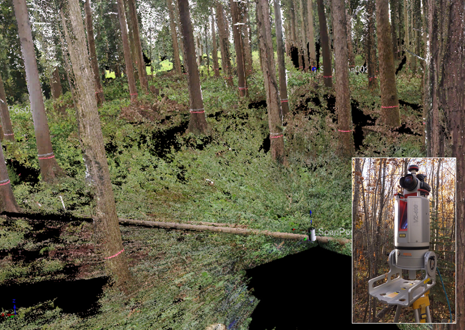 国内外での環境政策で、森林域における炭素蓄積量が注目されるようになり、森林計測技術やモニタリング手法の確立が重要になってきている。森林は複雑な形状をしているため、その形状を正確に把握することが難しかった。近年レーザーセンサー の技術進歩とデータ解析技術の発展により、これまで不可能であった森林計測が正確に行える様になった。