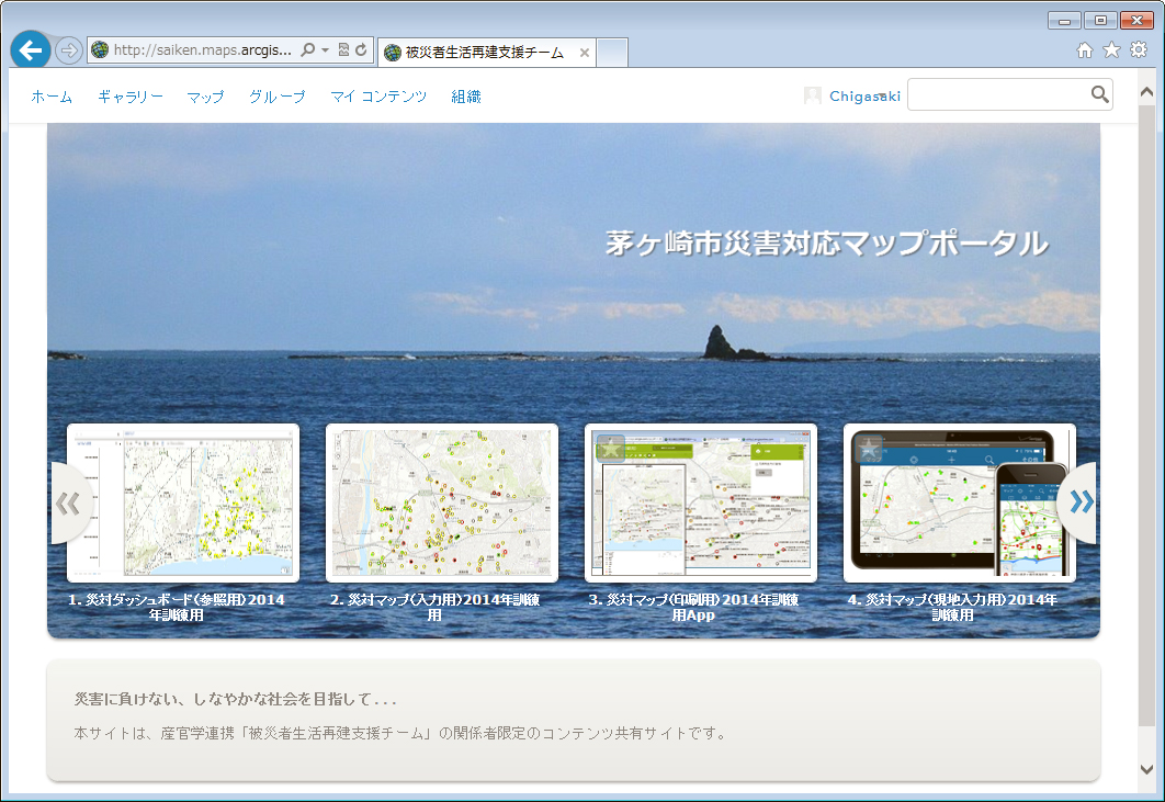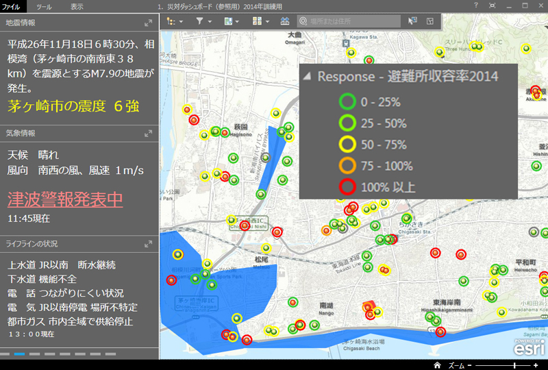 茅ヶ崎市では、大規模災害に備え、災害対策本部運営訓練を実施し、2014年の今年で4年目になる。訓練統制部から予告無しに付与される状況に訓練参加者(今年は職員約240名が参加)が適切に対応できるかが試される本番さながらのロールプレイング型訓練である。市では、IT(GIS)による状況認識の統一を実現すべく、ArcGIS OnlineによるクラウドGISを短期間・低コストにて導入することに成功し、本年度の訓練において大きな成果をあげた。