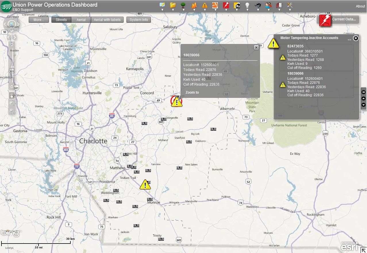 ノースカロライナ州モンローにあるUnion Power Electric Cooperative は、周辺地域の約7万顧客に電力を供給する共同組合である。同組合では、電力システムの稼働状況、作業員の分布、利用者への影響といった情報を見える化するプロセスを自動化し、役員や管理職が状況を包括的に把握できるシステムを取り入れている。社員は、社内データへのアクセス権を持ち、簡単に利用できる「Union Power Operations Dashboard」マップに情報を追加することができる。これにより、業務の効率化とコストの削減が実現されている。