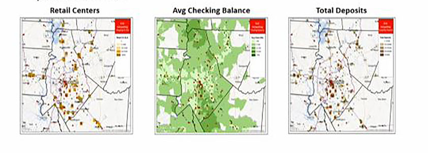 バンク・オブ・アメリカの副社長で小売流通部門の執行役員であるジョン・ボールヒーズ氏は、銀行特有のビジネス課題と日々向かい合っている。その課題とは、どこに新規支店や ATM を開設するか、どの支店を移転または閉鎖するかというものだ。バンク・オブ・アメリカでは、様々なデータを収集し、支店や ATM の収益と利用状況、顧客の分布やニーズなどを地図上で可視化することで、迅速かつ効果的な意思決定を実現している。支店やATMに関する物理的なネットワークを見直すことで、年間8億ドルの支出削減に成功した。
