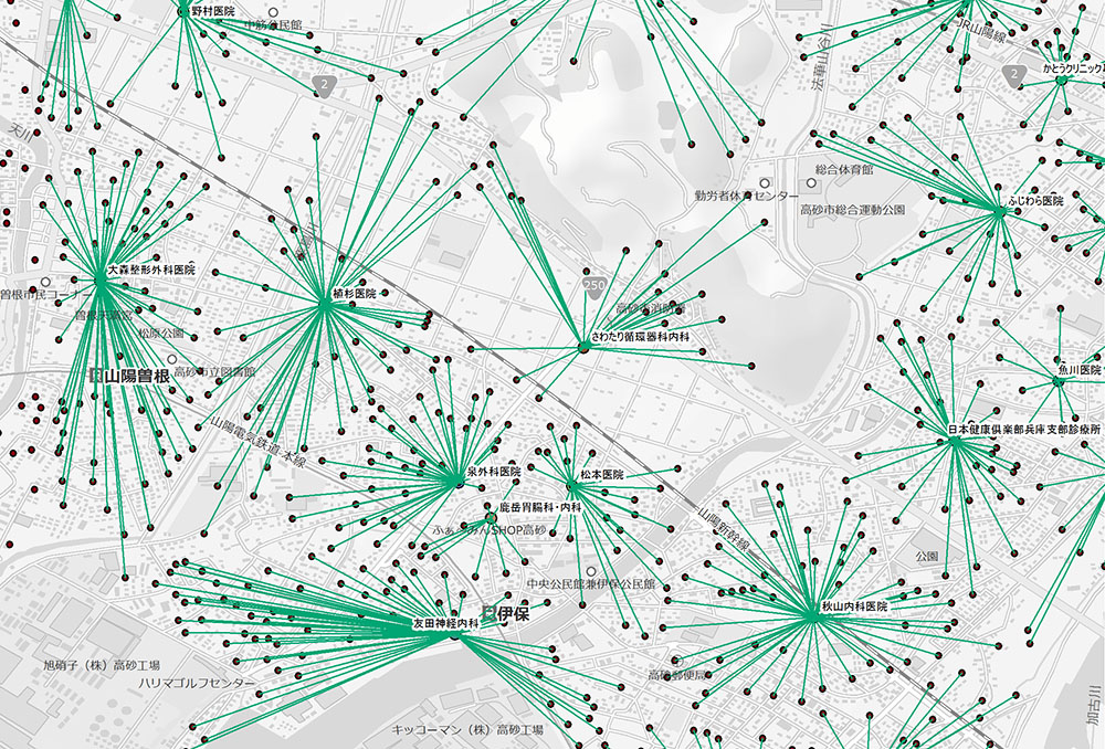 二次医療圏別の加入者と医療機関への受診行動をGISで分析し、国が進めている地域医療構想に基づき、関係する団体との連携強化にも保険者としての役割を担っていく。