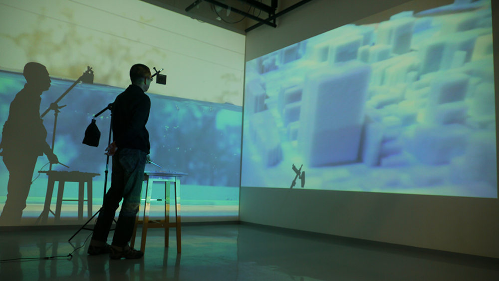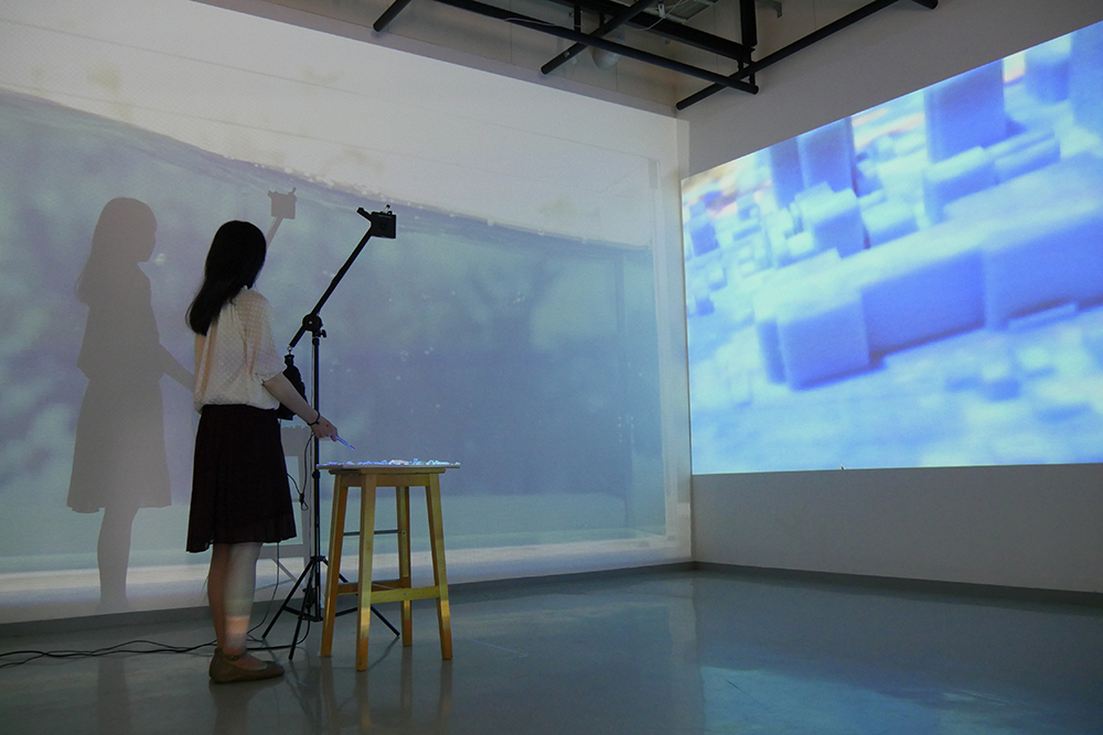 こうした立体模型を媒介として、鑑賞者の操作によってスクリーンが変化するといった、展示空間の壁と有機的な関係を持つような立体作品を設置する展示方法を「インスタレーション」と言い、アートの表現手法の一つである。インスタレーションは、空間に考えをインストールし、その時その場でないと表現できない唯一無二のもので、鑑賞者が作品に対して、何かアクションを起こした時にしか経験できない状況までを含めて、展示作品として表現するものである。