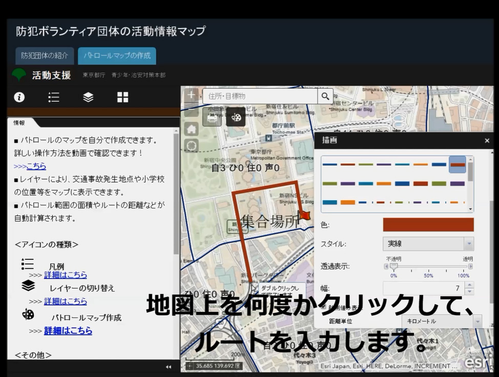 都民が地域の防犯情報を正しく理解するためには、わかりやすい情報が必要である。それには、地図表現によって、直感的でわかりやすいメッセージを伝えることが有効であった。ArcGIS Online は高い地図表現能力と、豊富なアプリケーションテンプレートを持っている。また、開発行為を行わずにマップ整備ができるので、都職員の手で修正・更新を行えることも採用の理由となった。