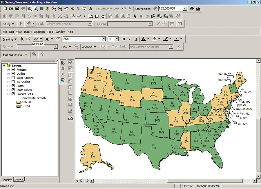 GIS を使用すると、データを分析し、わかりやすく表示することができる。スバル・オブ・アメリカ社の地理的意思決定支援担当者の Sean O’Halloran 氏は、次のように説明する。「高品質な人口統計データと強力な GIS 技術を組み合わせて立地選定分析を行えば、最高の代理店用地を見つけることが可能です」