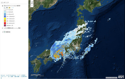 災害管理においては、リアルタイムなライブ情報が非常に重要となります。台風などの刻一刻と変化する気象情報もその一つです。ArcGIS Online 上でどなたでも利用可能な気象オンラインサービスは、気象庁による各種防災気象情報をゲヒルン株式会社から提供を受け ArcGIS で利用可能な形式で配信するサービスであり、データ変換等を行うことなくすぐにご利用いただけます。
