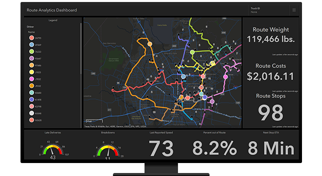 モノのインターネット(IoT)プラットフォーム、その他API やデータソースなどからデータを取り込むことができます。 また、リアルタイムのデータフィードを処理、視覚化、分析することができます。これら機能を使用して、リアルタイムの空間データを活用し、資産のリモートモニタリング、予知保全、プロセスの最適化などの重要な運用上の決定をおこないます。