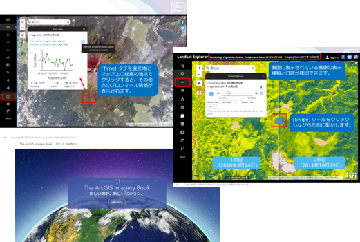 ArcGIS と衛星画像などを活用した学習用コンテンツを豊富に提供しています。