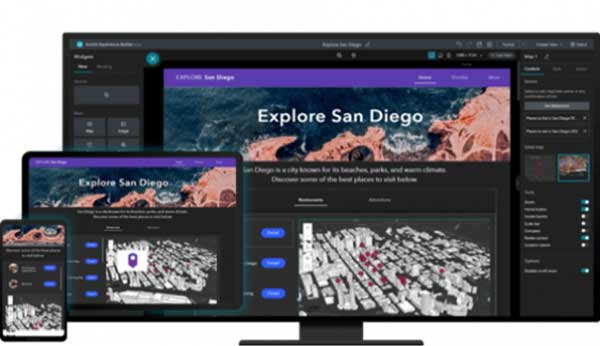 ArcGIS Experience Builder は、モダンな Web アプリ構築のための新しいビルダーで、コードを記述することなくWebアプリケーションを作成することができます。豊富なウィジェット セットから必要なツールを選択したり、独自のテンプレートをデザインしたり、2D コンテンツや 3D コンテンツを操作したりすることができます。Developer Edition (開発者向けエディション) は、これらの機能に加え、ウィジェットやテーマを独自に開発するなどのアプリをカスタマイズするためのフレームワークを提供します。