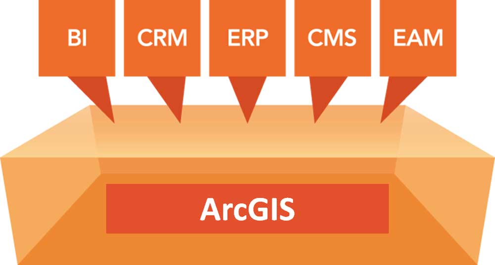ArcGIS は、BI、CRM、ERP など他のビジネス システムに地図を融合し、位置情報の力を最大限に活用し、組織内での情報共有や意思決定を強力に支援します。