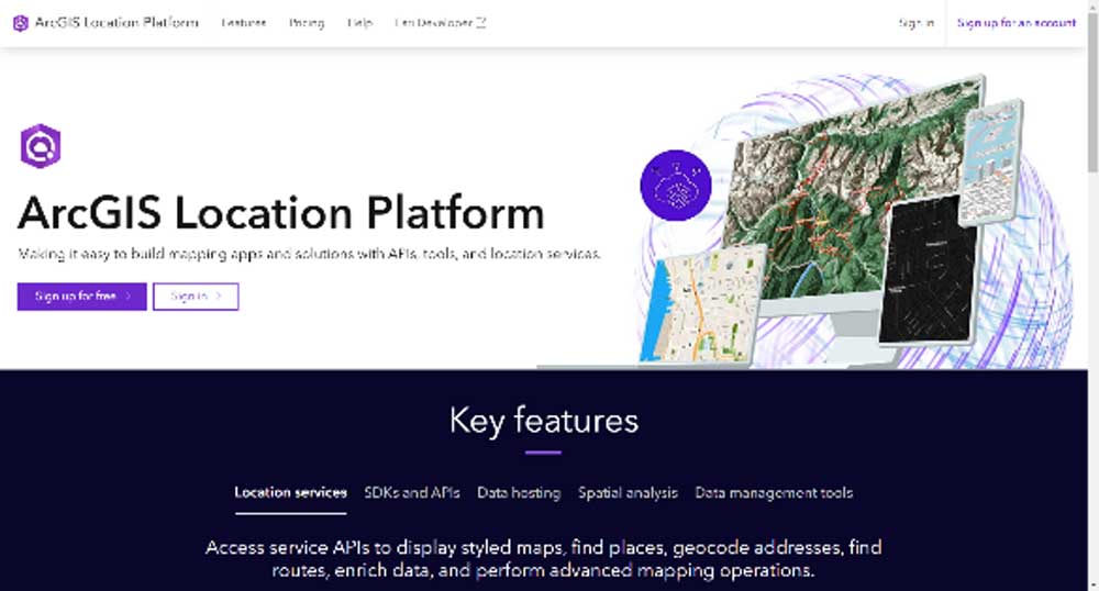 ArcGIS Location Platform では、位置情報/地理情報に関するサービス、開発用 API/ツール、コンテンツを豊富に提供しており、無料から利用可能です。これらを活用することにより、既存システム/アプリへの地図機能の追加や新たな地図システム/アプリの開発を効率的に行うことができます。