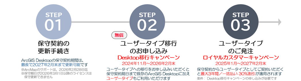 本キャンペーンは、ArcGIS Desktop からユーザータイプへ移行したライセンスが対象です。
