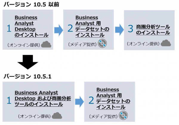 従来はソフトウェア本体 → データ → 商圏分析ツールの順にインストールする必要がありましたが、本バージョンでは、ソフトウェア本体および商圏分析ツールを一括でインストールできるようになりました。