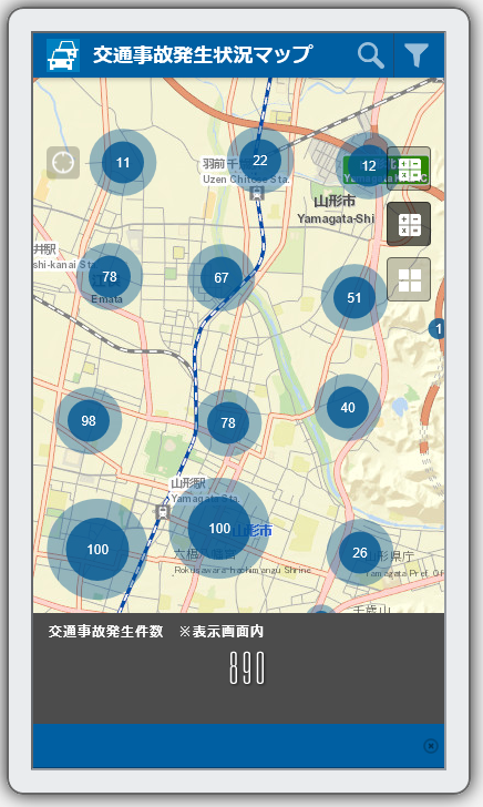 スマートフォンで交通事故発生状況を閲覧するためのマップです。