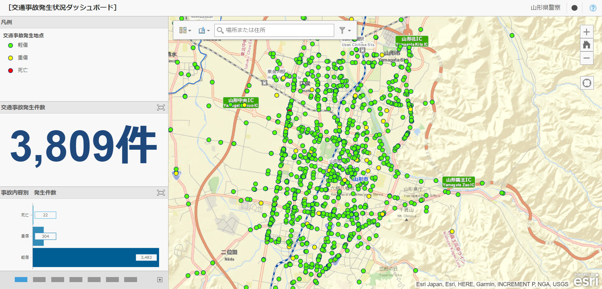 山形県警察本部(以下「山形県警」という。)は、ESRIジャパン株式会社(本社:東京都千代田区、代表取締役:正木 千陽)のクラウドサービス ArcGIS Online を利用した「交通事故状況公開システム」の運用を開始しました。
