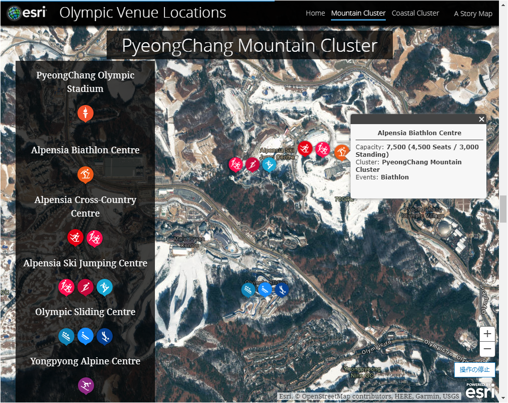 3. 衛星画像で見る競技会場 同会場で引き続き平昌パラリンピックが開催されます。このマップでは各競技会場の位置と周辺の地形を衛星画像で閲覧できます。